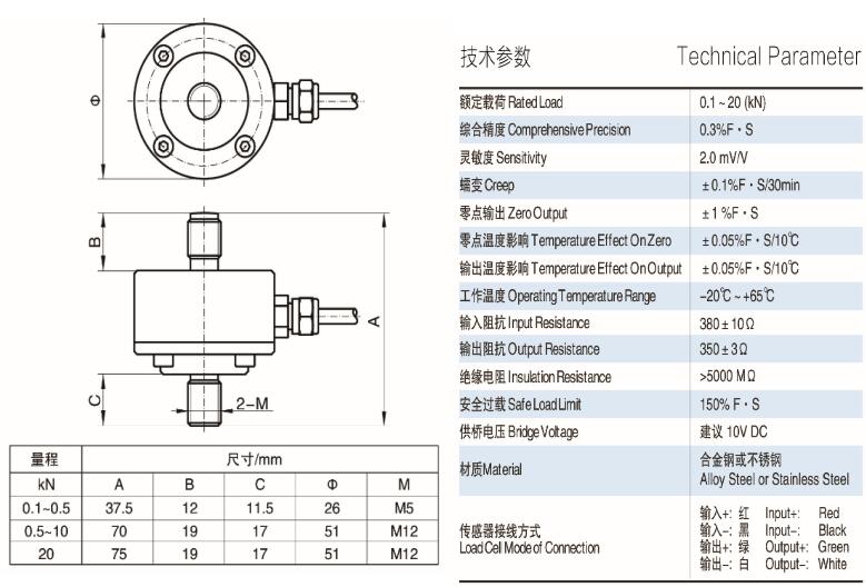 RK-212不锈钢柱式拉压力传感器采用应变式负荷原理,所测系统可能出现瞬时最大的拉力不能超过额定值150%FS,表面不可敲击或者变形,引线不能进水,以防导疏。